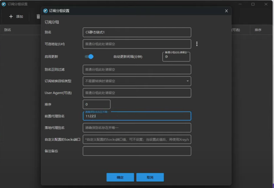 点击添加,别名随便,前置代理填写你刚才编辑服务器的别名。