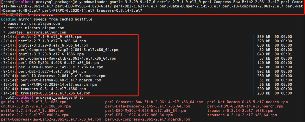 yumdownloader –resolve proxysql gnutls nettle perl-Compress-Raw-Bzip2 perl-Compress-Raw-Zlib perl-DBD-MySQL perl-DBI perl-Data-Dumper perl-IO-Compress perl-Net-Daemon perl-PlRPC trousers