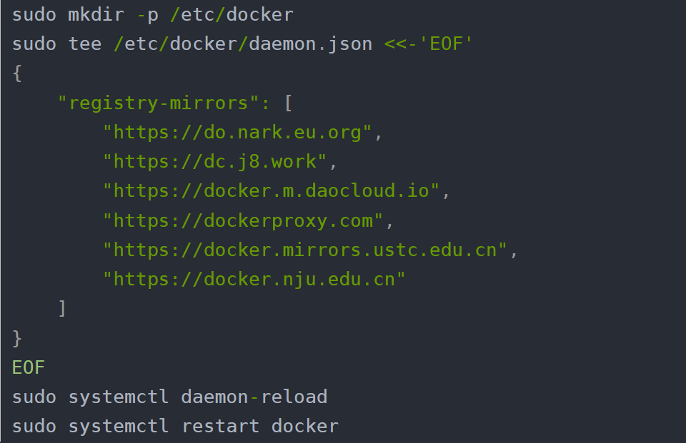 设置国内源:提示:常规方案(作用不大) 阿里云提供了镜像源:https://cr.console.aliyun.com/cn-hangzhou/instances/mirrors 登录后你会获得一个专属的地址使用命令设置国内镜像源:通过vim /etc/docker/daemon.json 进入修改添加 registry-mirrors 内容后重启…